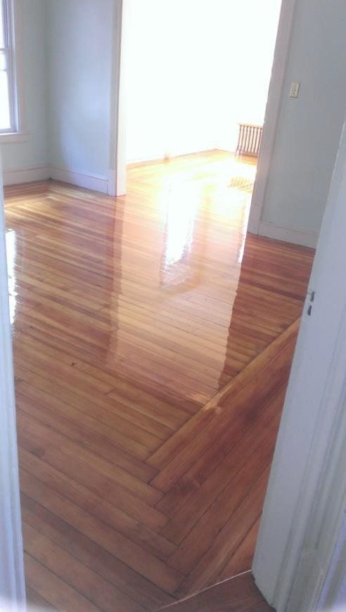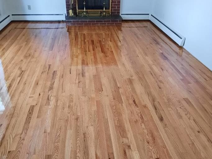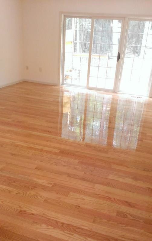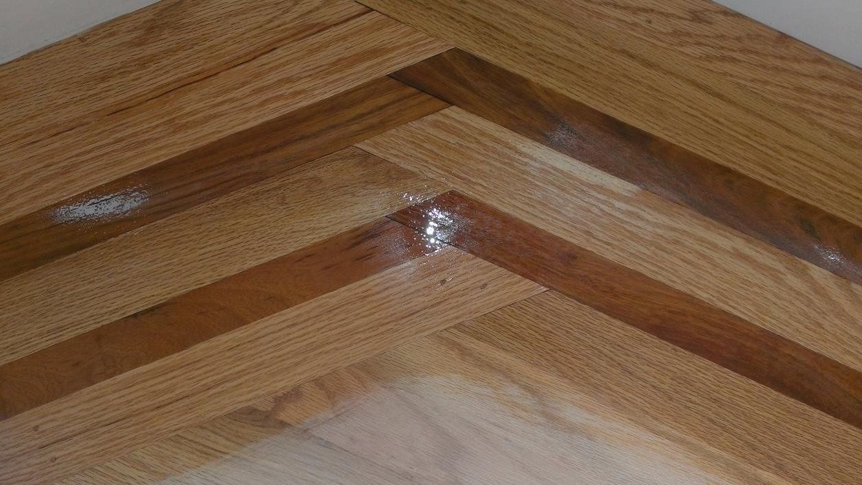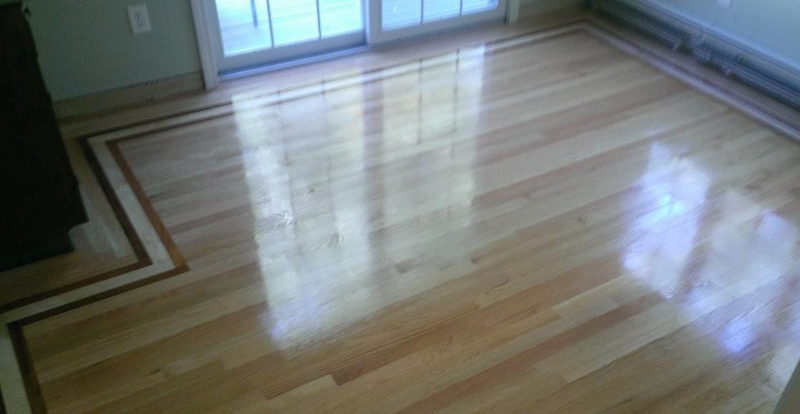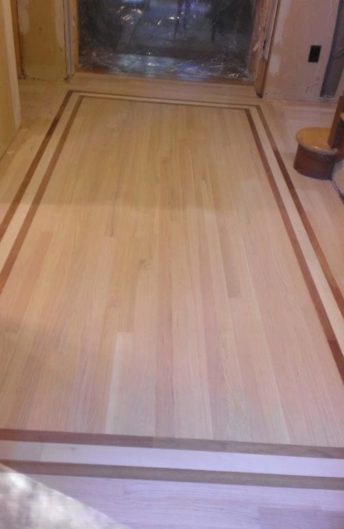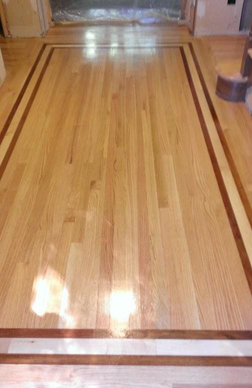 Red Oak Floor with Brazilian Cherry Feature Strip (polyurethane not dry)