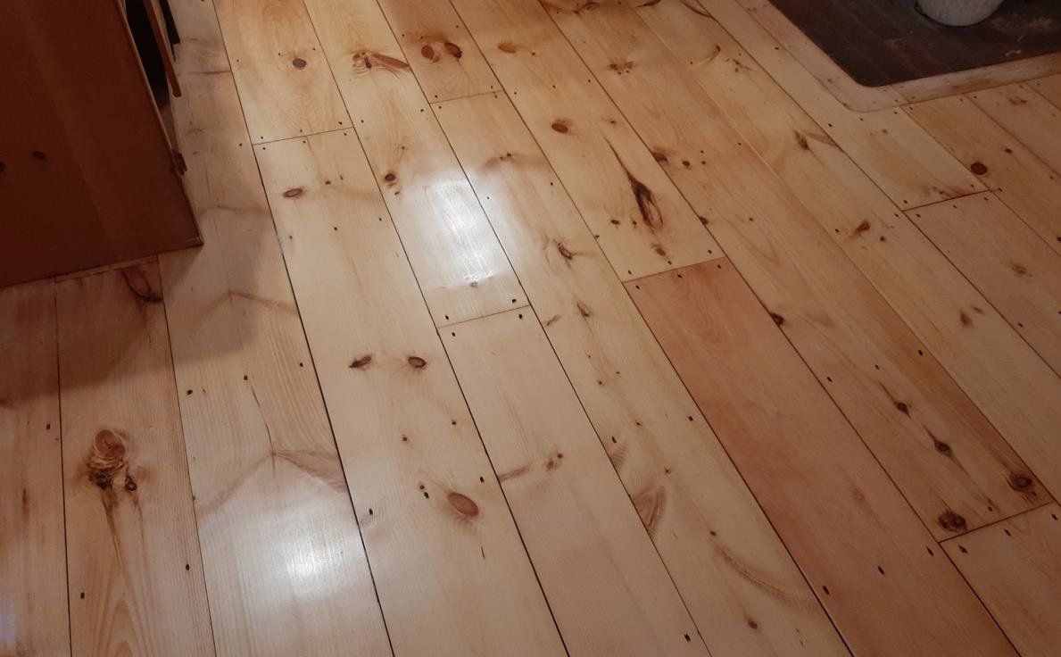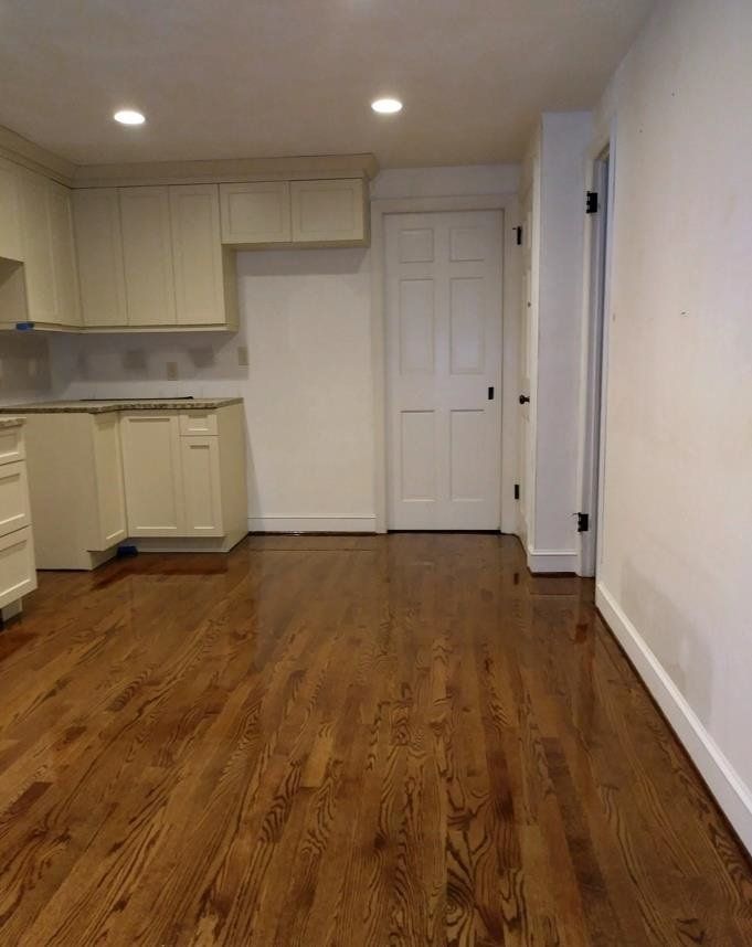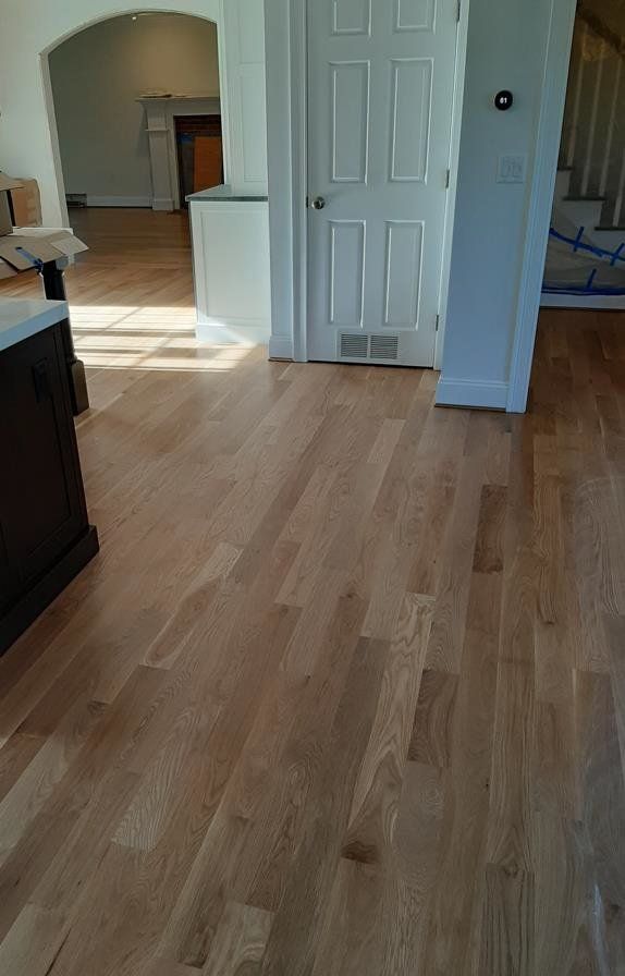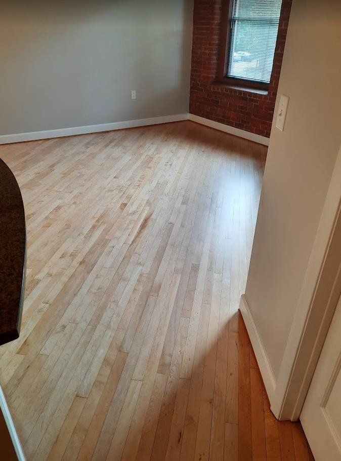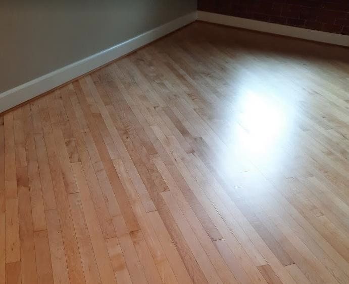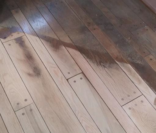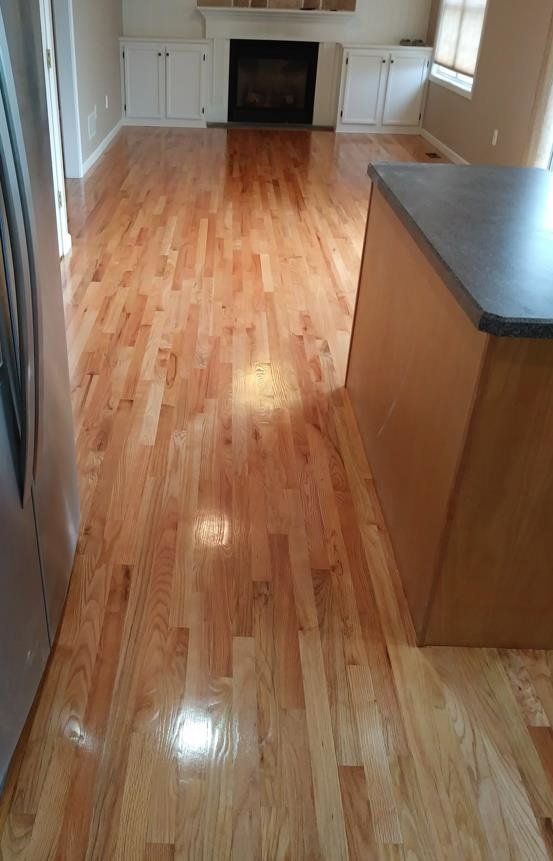 Red Oak Floor with Brazilian Cherry Feature Strip (polyurethane not dry)